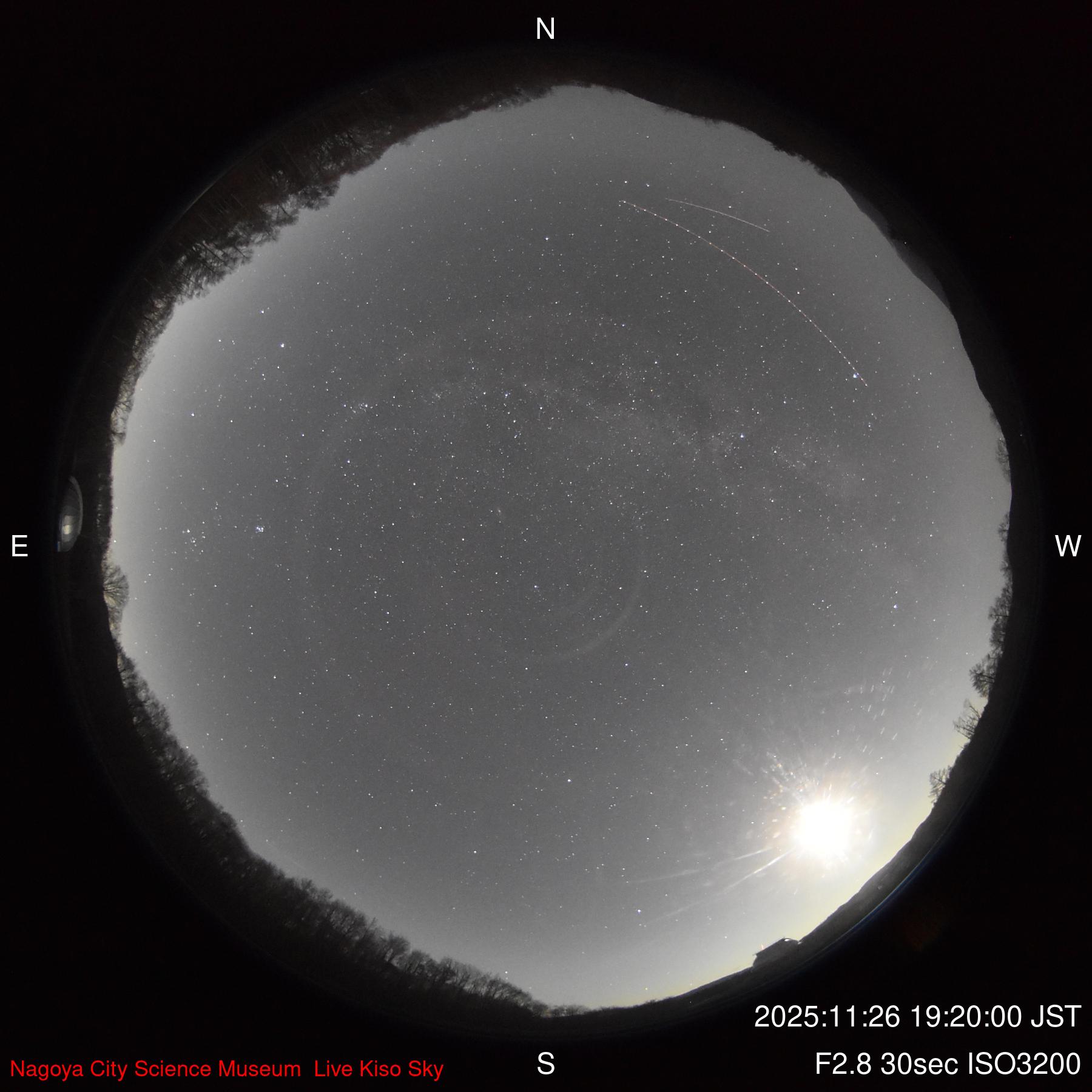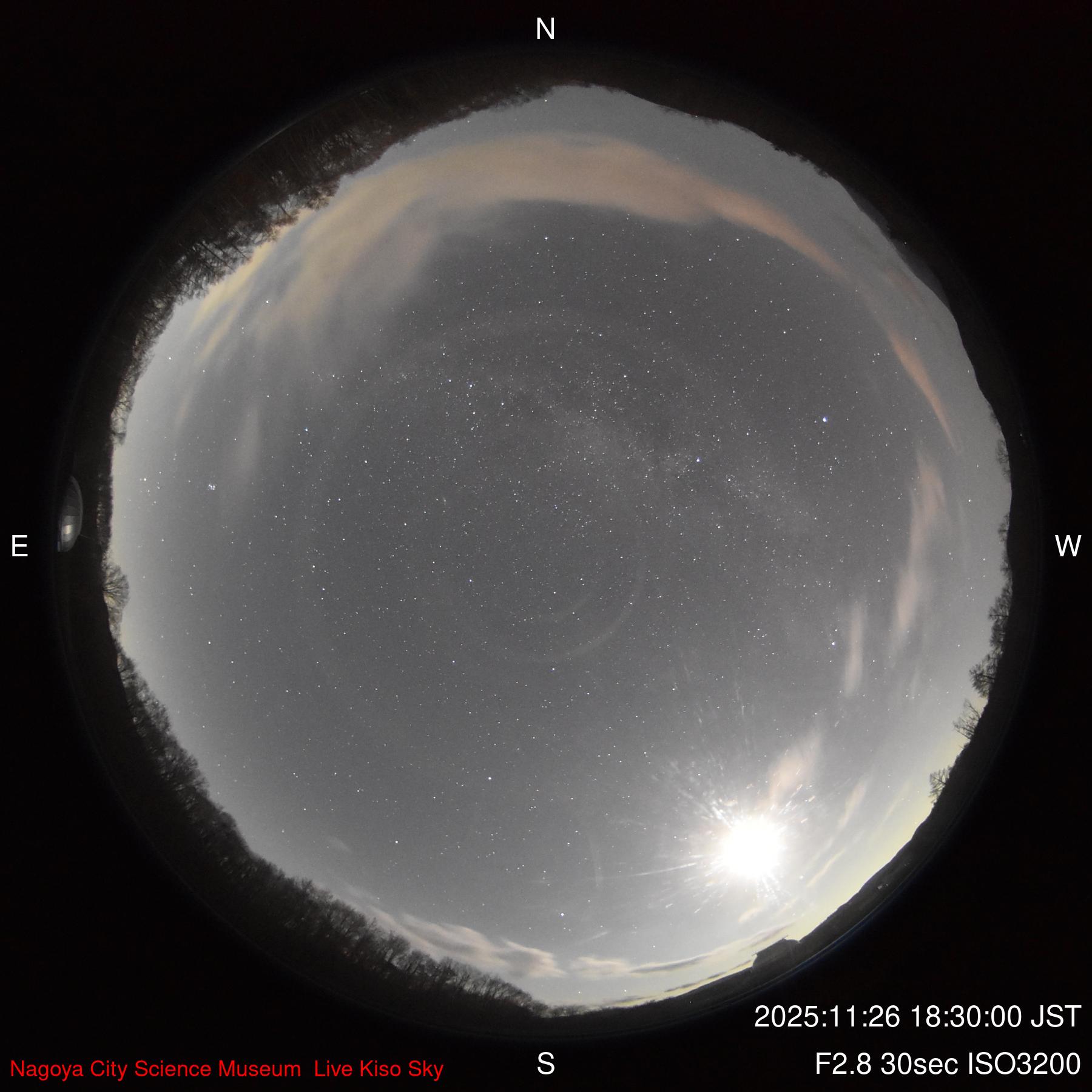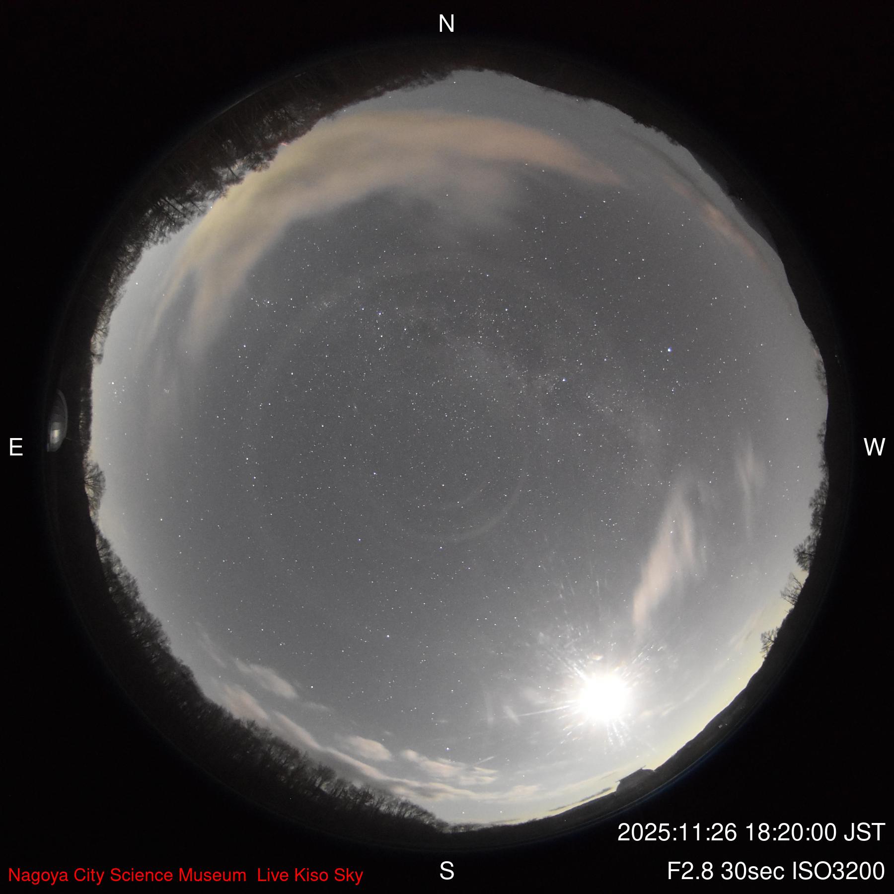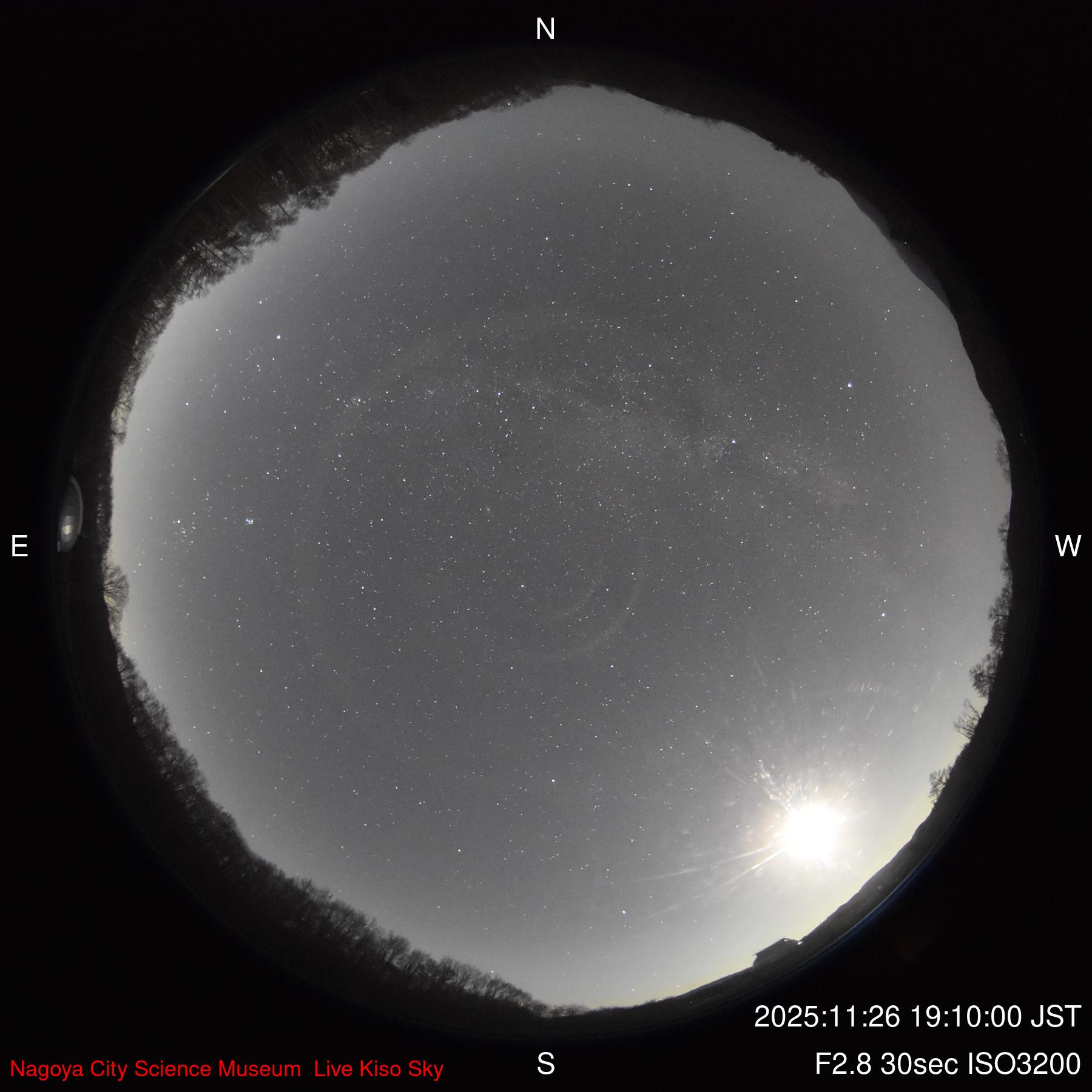 木曽観測所からの「現在の空」2025年11月26日19時30分更新 クリックすると大きくなります |