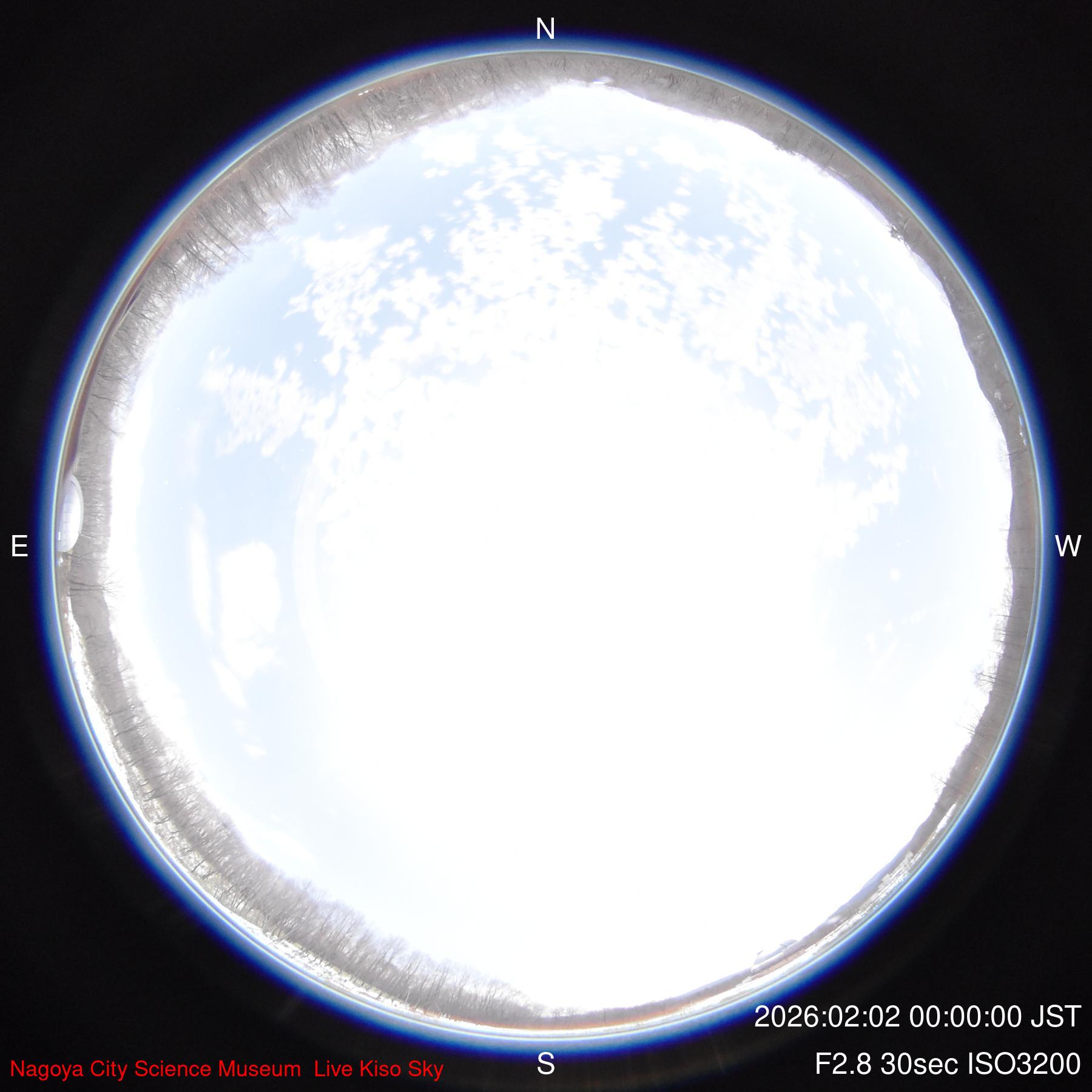 木曽観測所からの「現在の空」2026年02月02日00時00分更新 クリックすると大きくなります |