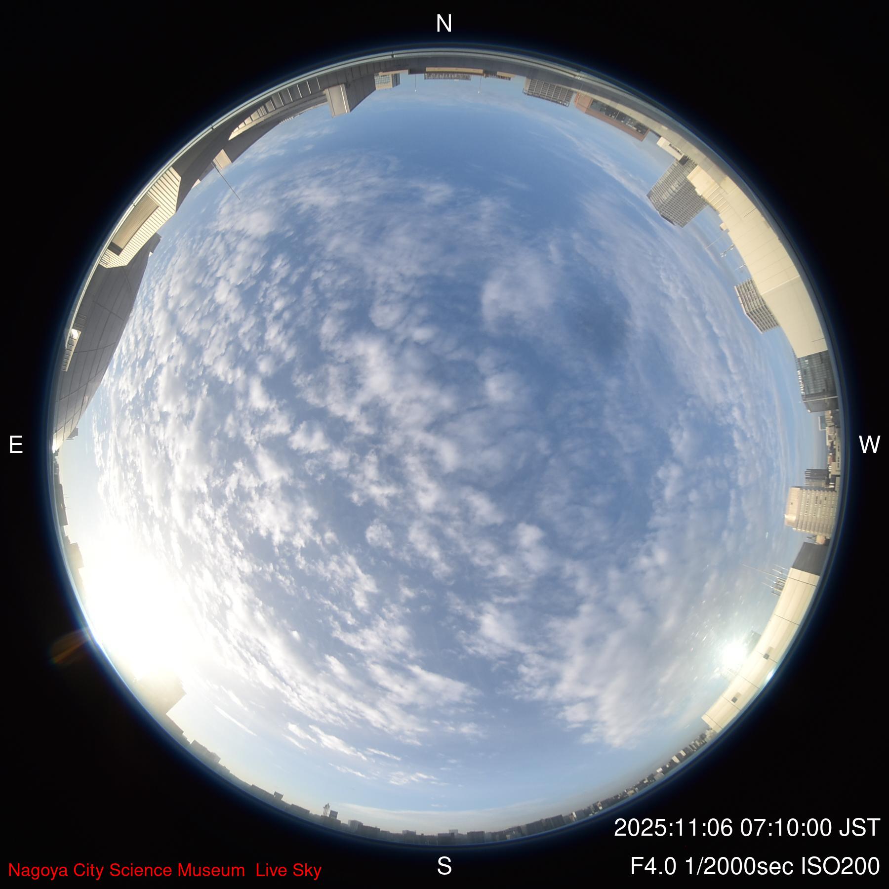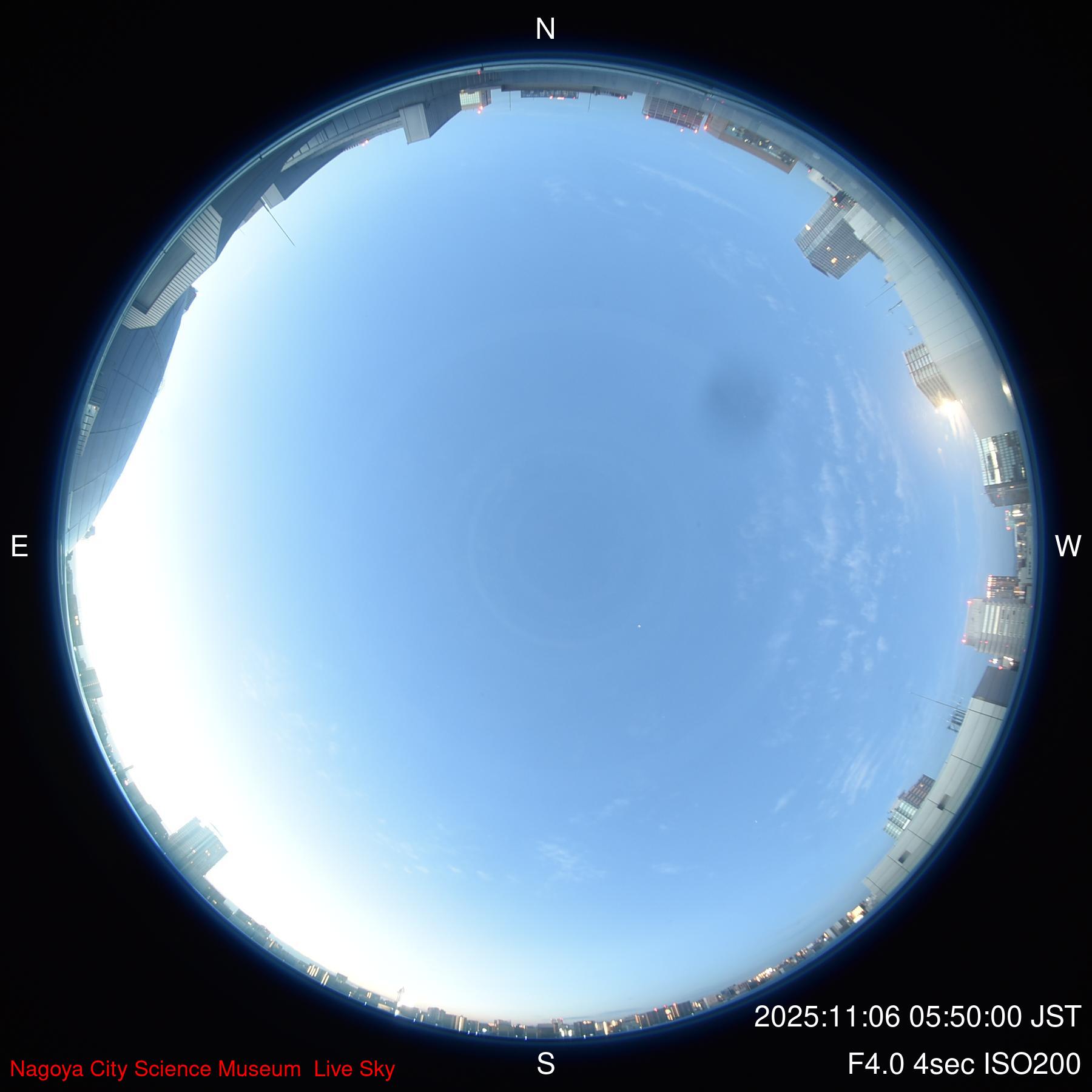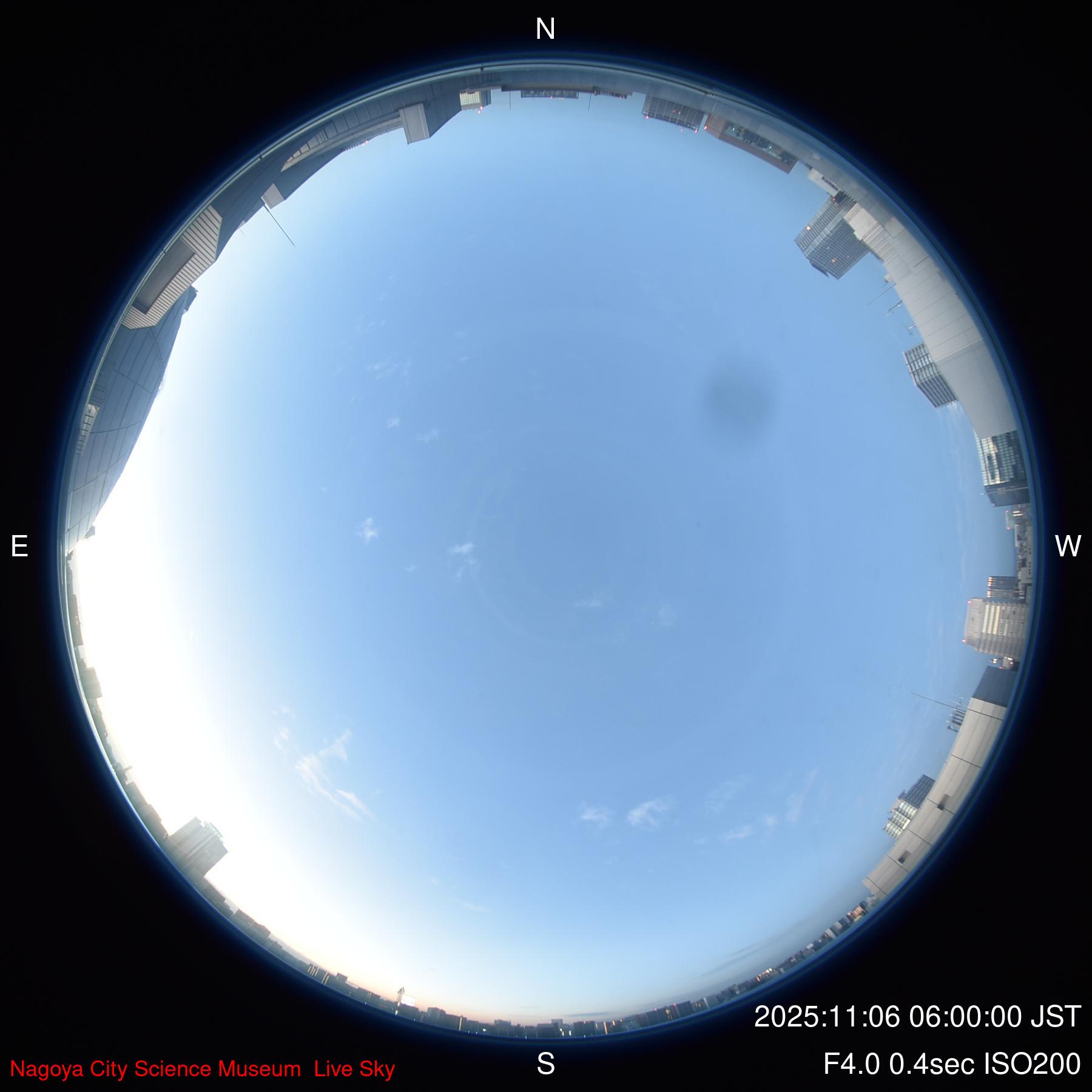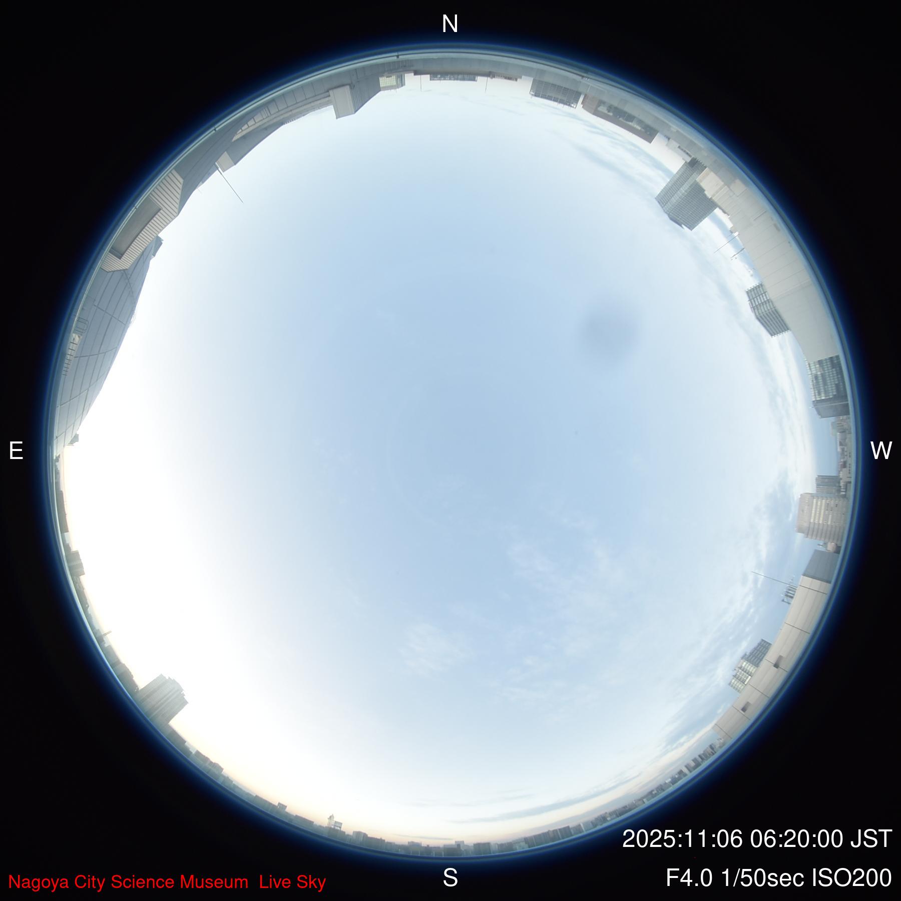 名古屋市科学館からの「現在の空」2025年11月06日07時10分更新 クリックすると大きくなります |