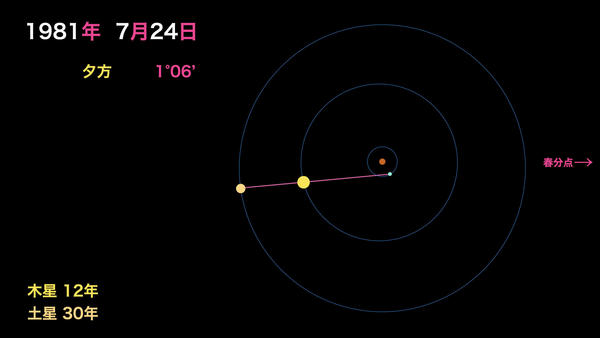 ㊍㊏㊍㊏㊍㊏ 1980-81年には計3回並ぶ(三連会合)というこれはまたまた別の意味で超レアな会合でした。BC7年の5月27日、10月6日、12月1日の三連会合はイエス・キリスト生誕のベツレヘムの星との関わりがあるとも考えられているほどの現象です。名古屋市科学館のプラネタリウムではクリスマスの投影や12月の一般投影でクリスマスを題材にするときに再現してきました。今年は夜間投影でその様子を再現します。夜間投影「クリスマスの夜」のお申し込みはこちらです。