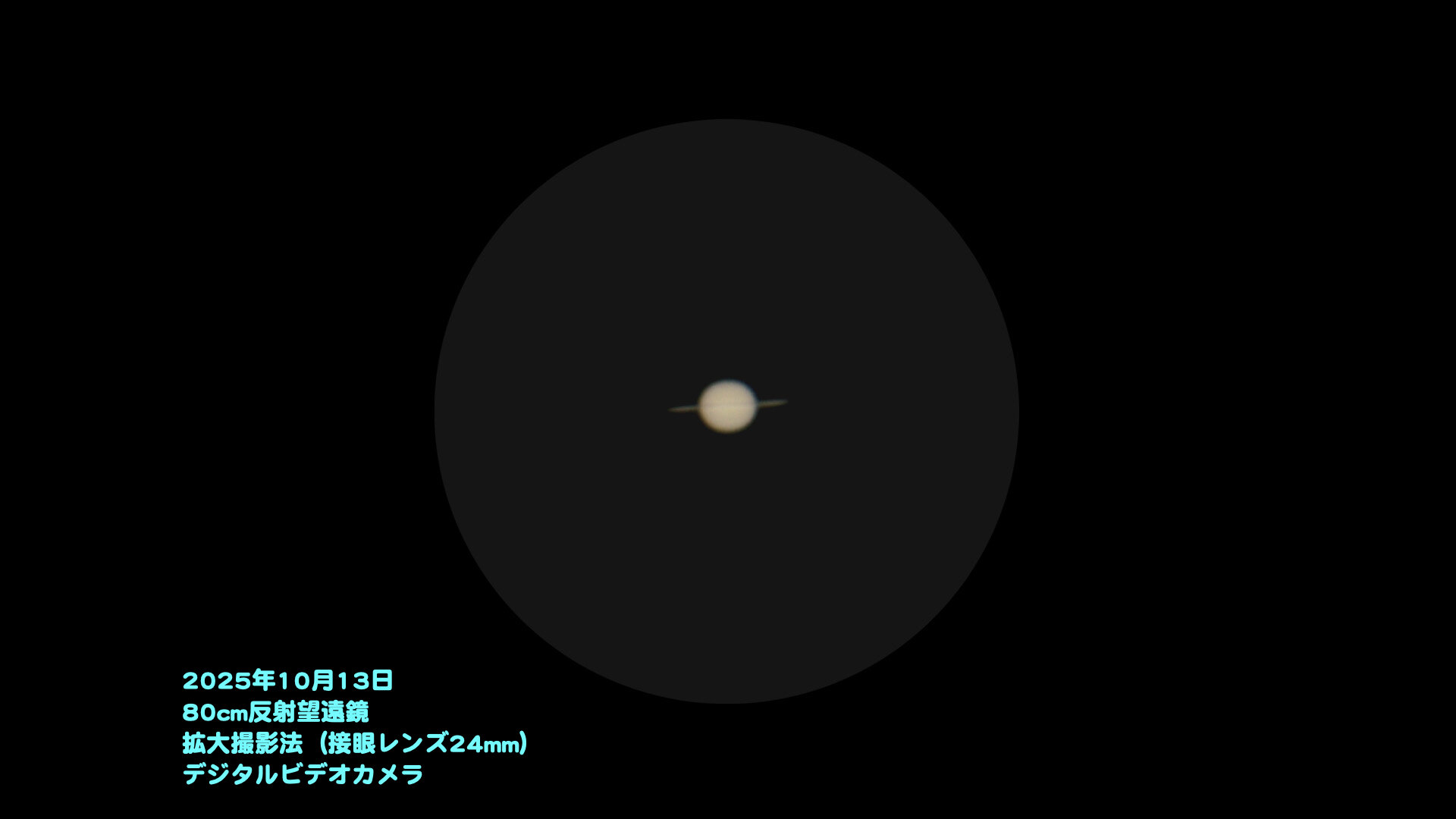 2025年秋の土星です。図形的に完全な消失=真横になるのではありませんが、ほぼ見えなくなる感じが長く続きます。