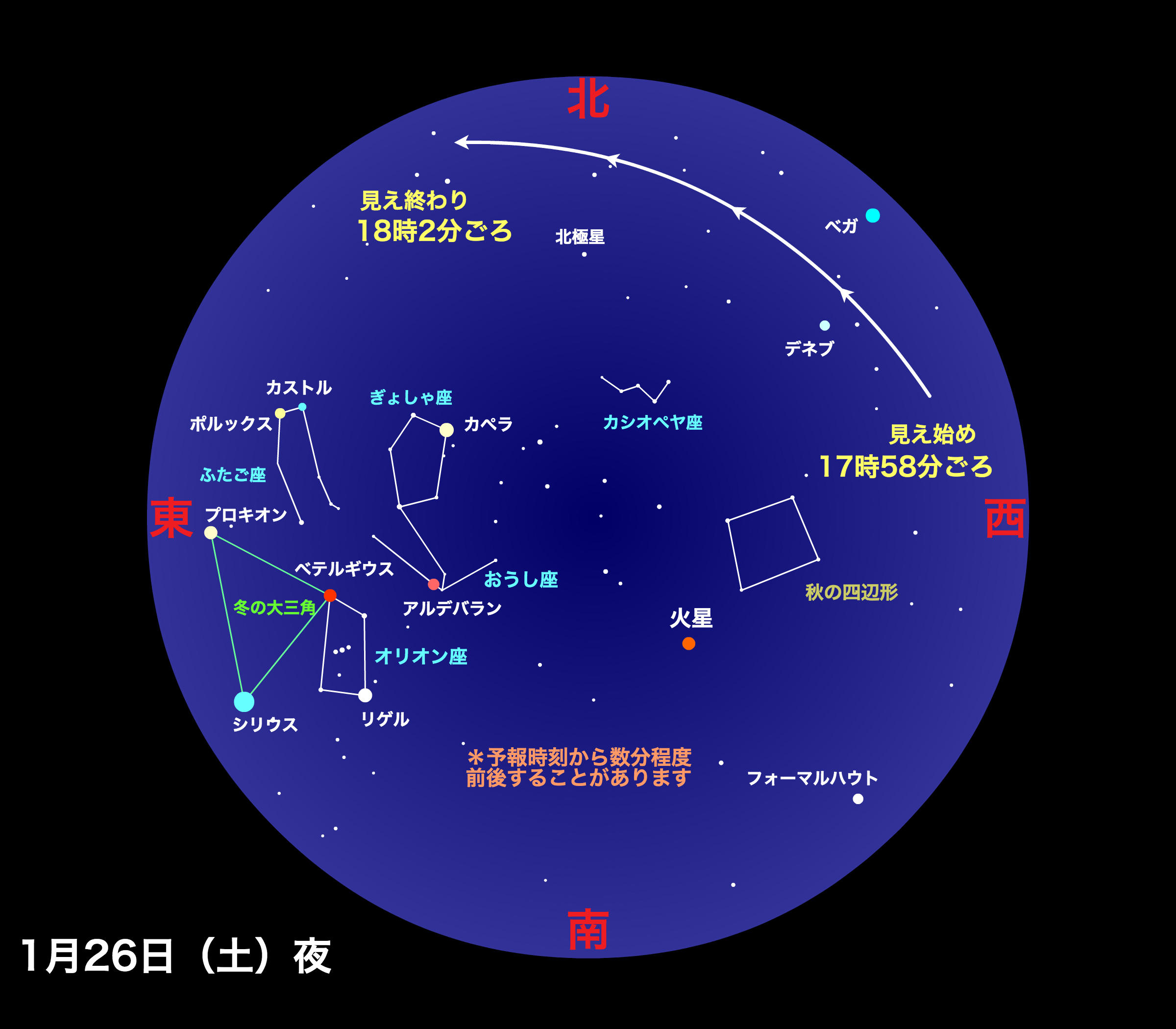 1月26日 17時58分頃から約4分間 最大高度20度 北西→北