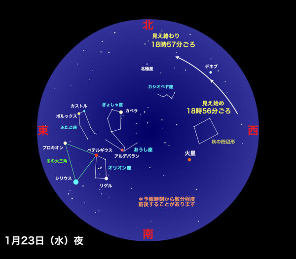 1月23日 18時56分頃から約1分間 最大高度25度 西→北西