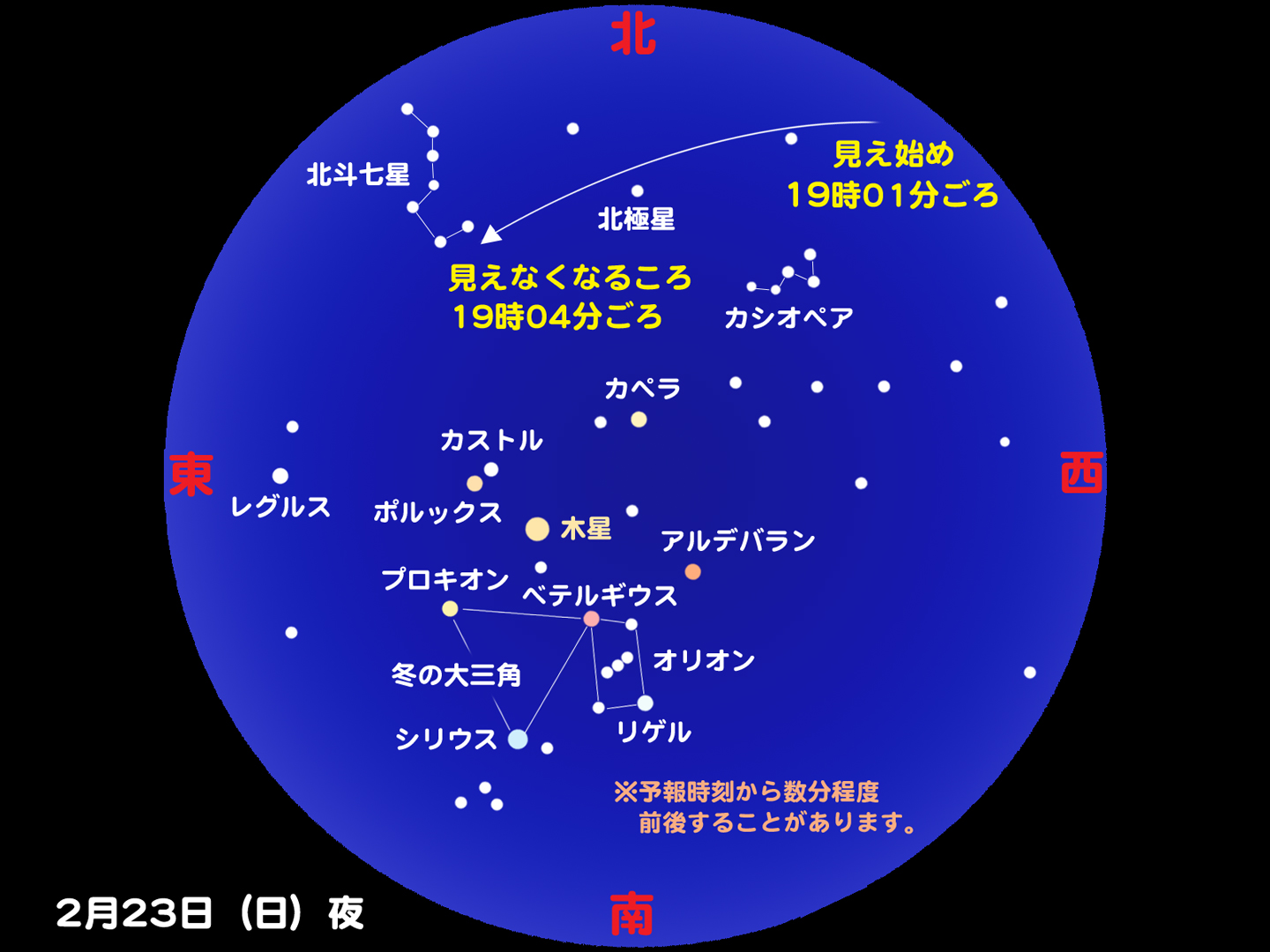 2月23日 19時01分頃から約3分間 最大高度37度 北西→北東