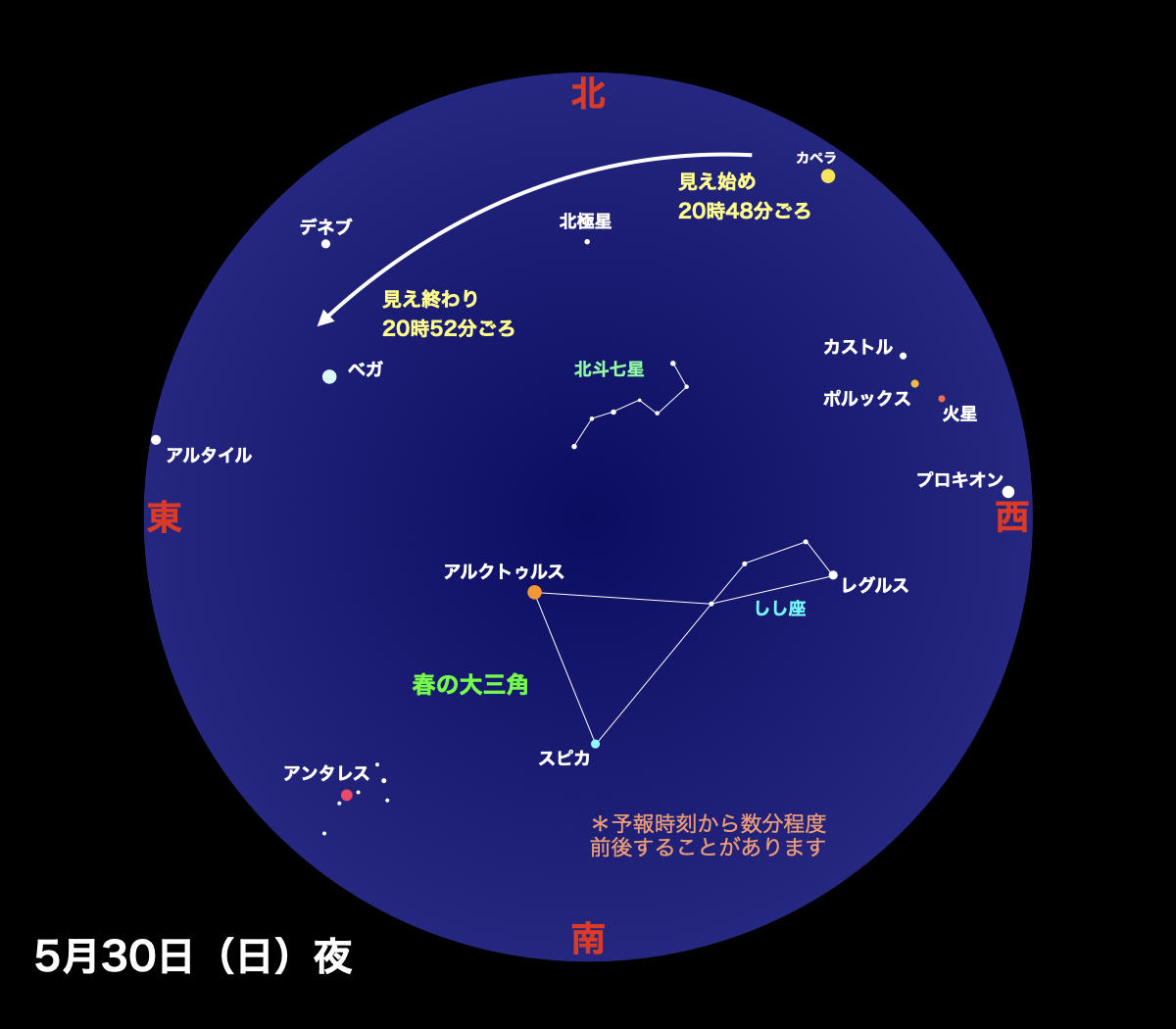 5月30日 20時48分から約4分間 最大高度26度 北西→北東