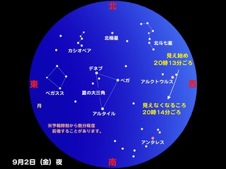 9月03日 19時17分頃から約3分間 最大高度84度 北西→ほぼ真上→南東